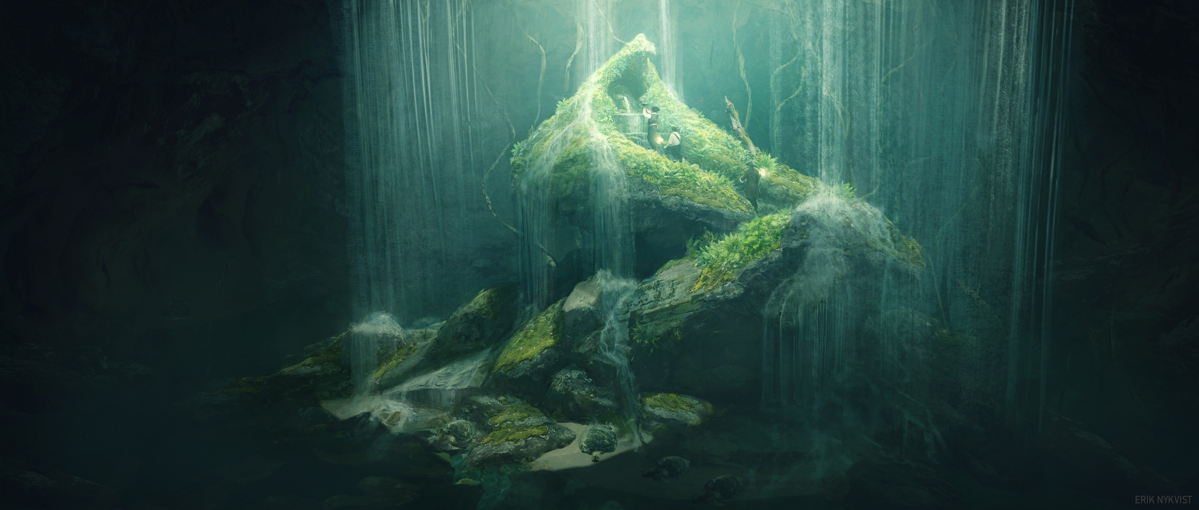 In this image a new group of explorers do the same thing and finds his ship after hundreds of years.